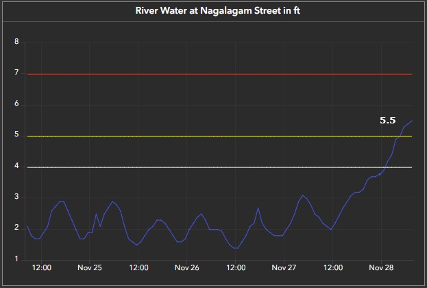 කැළණි ගඟේ ජල මට්ටම (කොළඹ නාගලගම් වීදියේ) වැඩිවීම ආරම්භ වී ඇත. (27.11.2025 ප.ව. 9)