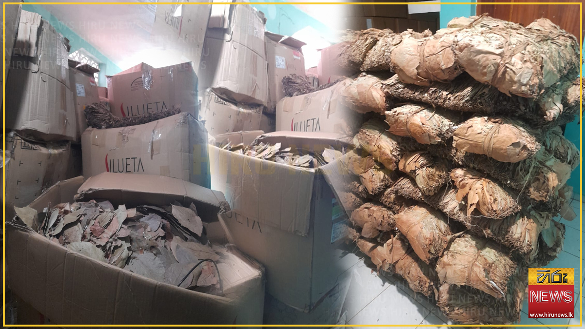 තීරුබදු නොගෙවා මෙරටට හොර රහසේ ආනයනය කරන ලද රුපියල් කෝටි 10 කට අධික වටිනාකමකින් යුත් තෙන්දු කොළ කිලෝ 10,000 ක් මල්වාන ප්රදේශයේ නිවෙසක සඟවා තිබියදී සැකකරුවකු ද සමග අත්අඩංගුවට ගත් බව සුරාබදු දෙපාර්තමේන්තුව සඳහන් කරනවා.