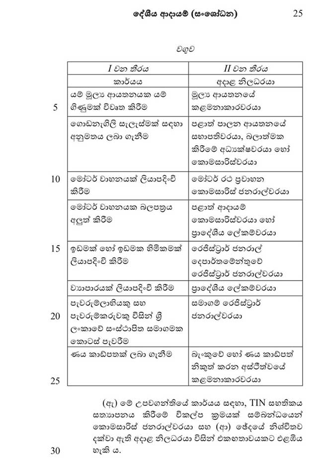 මේ වනවිට ගැසට් කර ඇති දේශීය ආදායම් සංශෝධන පනත් කෙටුම්පත සම්මතවීමෙන් අනතුරුව සේවාවන් රැසක් සඳහා TIN සහතිකයක් අත්යවශ්ය වනු ඇත.